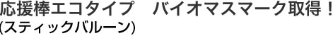 弊社、スティックバルーン チアスティック 応援棒が、日本有機資源協会から 「生物由来の資源[バイオマス]を利活用し、品質及び関連法規、基準、規格等に合致している環境商品」 であると認定されました。 弊社の環境を考えた商品の開発努力が認められた証です。 今後も引き続きクリーンなイメージを持つ岩村包装企画の製品をクライアント様にはご提案していく方針です。今後ともよろしくお願いいたします。